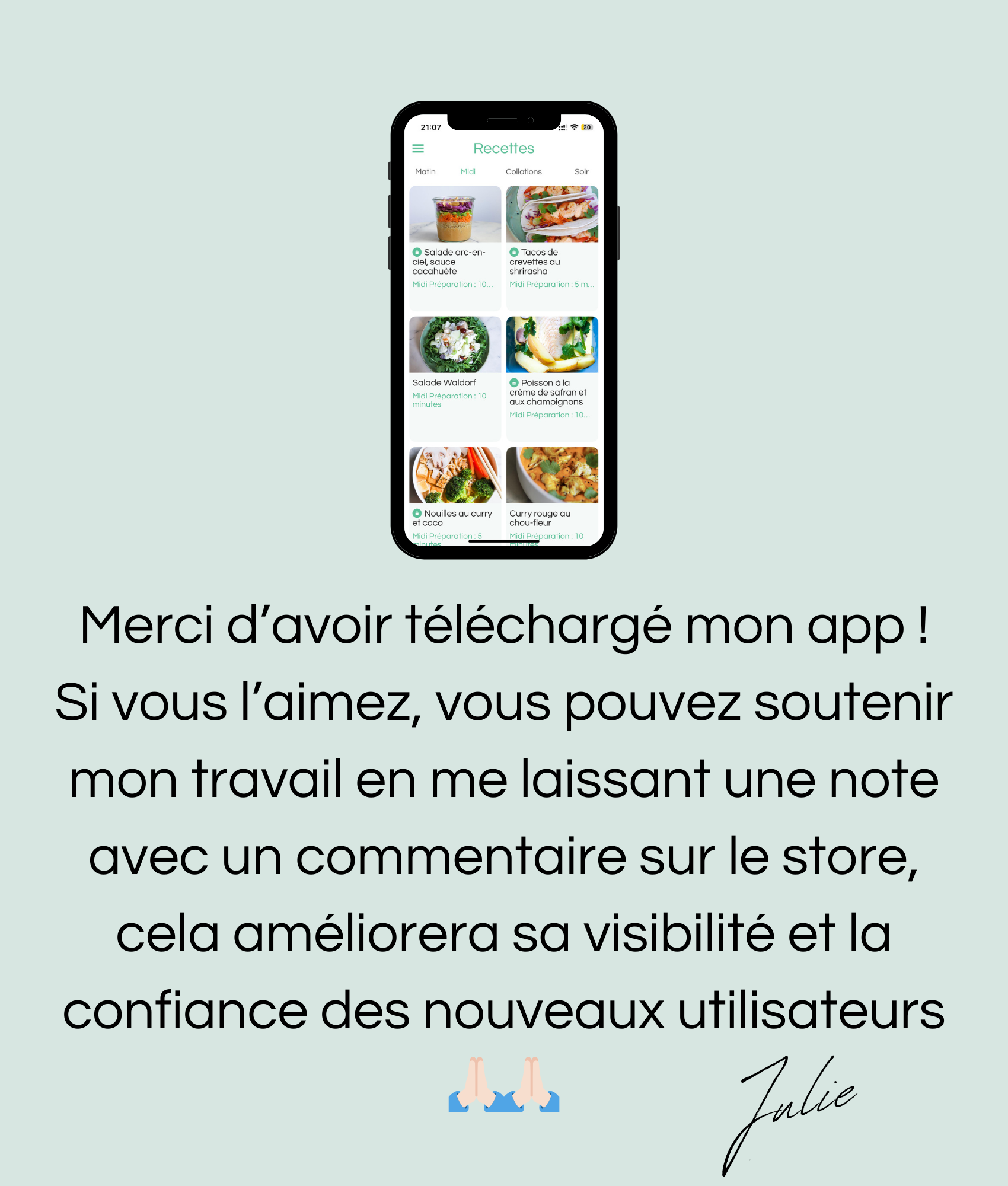 Ce "meal plan" était à l'origine envoyé par mail à chaque abonné : le côté fastidieux de la gestion des abonnements m'a poussé à trouver une solution plus simple... pour vous comme pour moi : les abonnements sont gérés par votre app store, ce qui permet à cette app d'être 3 fois moins chère que la newsletter !